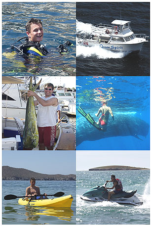 Phenomenal sport fishing offers record Marlin, Sailfish, Dorado, Tuna, and Yellowtail. Friendly, playful sea lions cavort with divers and snorkelers, while an astonishing variety of tropical fish swim leisurely below them. Try jet skiing, horseback riding, ATV's, mountain biking, kayaking, hiking, and more. Otherwise, relax and take a jeep tour, sail, or a sunset cruise.